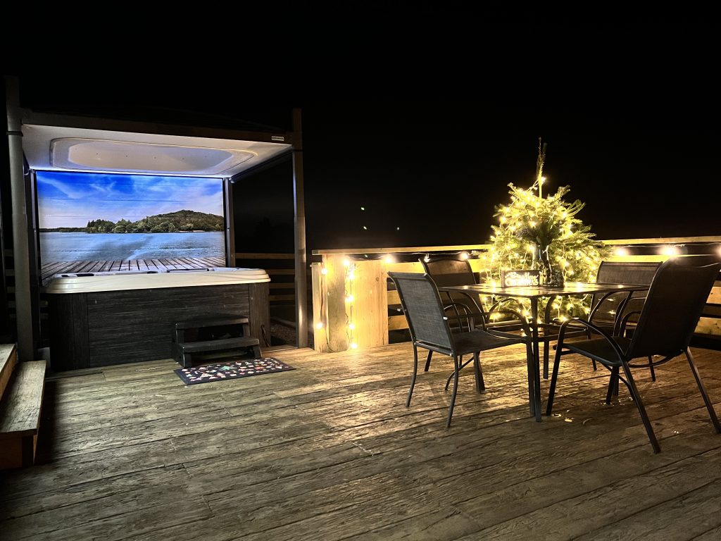 Open plan living/Dining area, ornate bathroom, Bedroom with private balcony, expansive decking area at the front with Hydro spa Hot Tub, seating/Dining area, BBQ, chiminea, iconic view and we allow tents on the decking or within it’s grounds for extra guests. ( charge applicable)