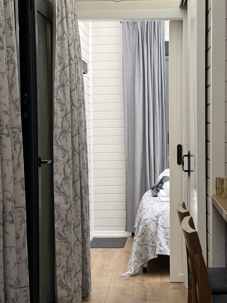 Our Hideaway Treehouse, where you can immerse yourself in nature and enjoy a sky-viewing luxury bed for star-gazing nights, cozy bunkbeds for the children, and a rustic ensuite. You can relax on the private balcony, where you can eat alfresco and cook on the BBQ, or unwind in the undercover Hot tub, with magnificent views, surrounded by the natural seclusion of the trees.