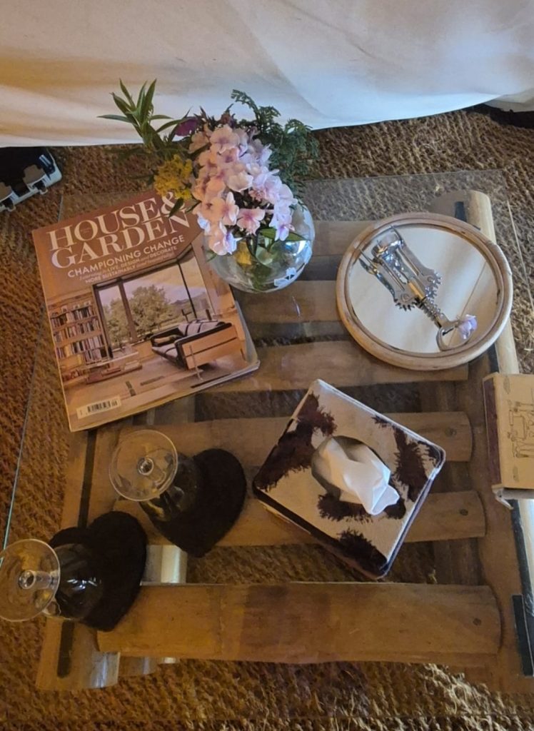 We supply picnic blankets and throws and a luxury picnic basket with crockery, cups, knives and forks, a mini fridge freezer, a Bluetooth speaker, and a kettle for your morning coffee.