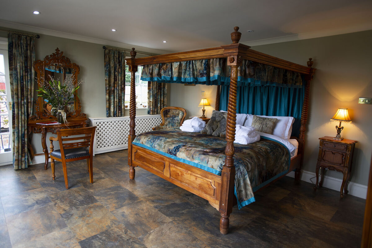 This very spacious Country Deluxe Room has South and west facing windows, with views over Burtree’s rolling countryside. It is tastefully decorated with French style ‘white wash’ furniture to a countryside theme, with fresh flowers throughout.